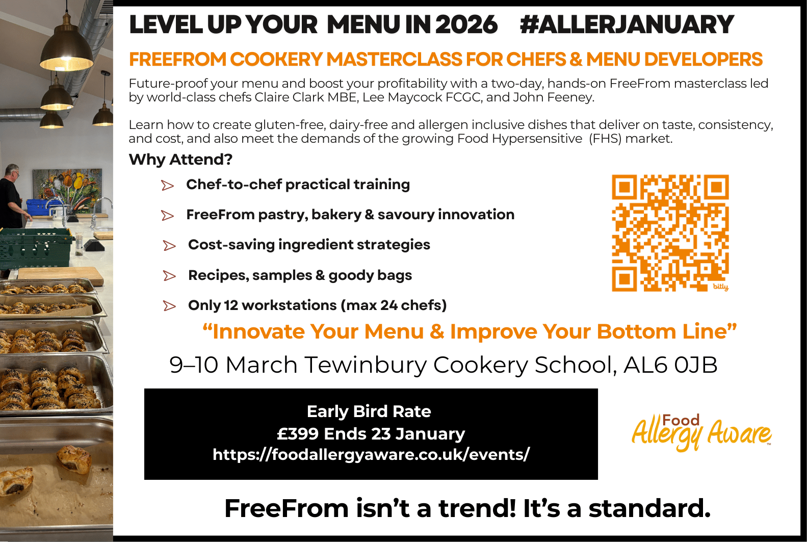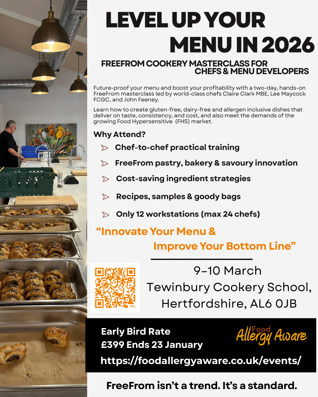 Ready to innovate your kitchen and menus? Join the FreeFrom Cookery Masterclass with award-winning chefs and get hands-on skills using plant-based thickeners, dairy/egg alternatives, and creative freefrom techniques.