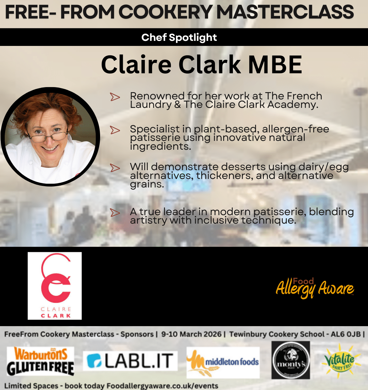Link foodallergyaware.co.uk/events/free-from-cookery-masterclass