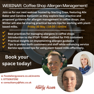 Webinar: Best Practice in Coffee Shop Allergen Management – Serving the Food Hypersensitive (FHS) Customer