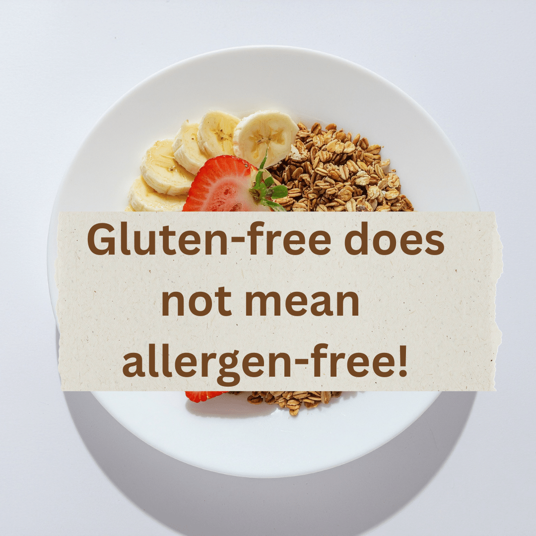 A gluten-free product (≤20mg/kg gluten) may be safe for someone with coeliac disease, but not safe for someone with an oat allergy if it contains gluten-free oats.